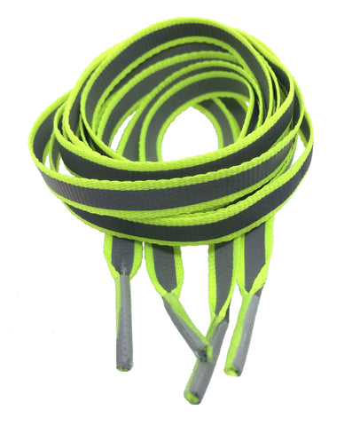 Flat Reflective Yellow Shoelaces - 8mm wide